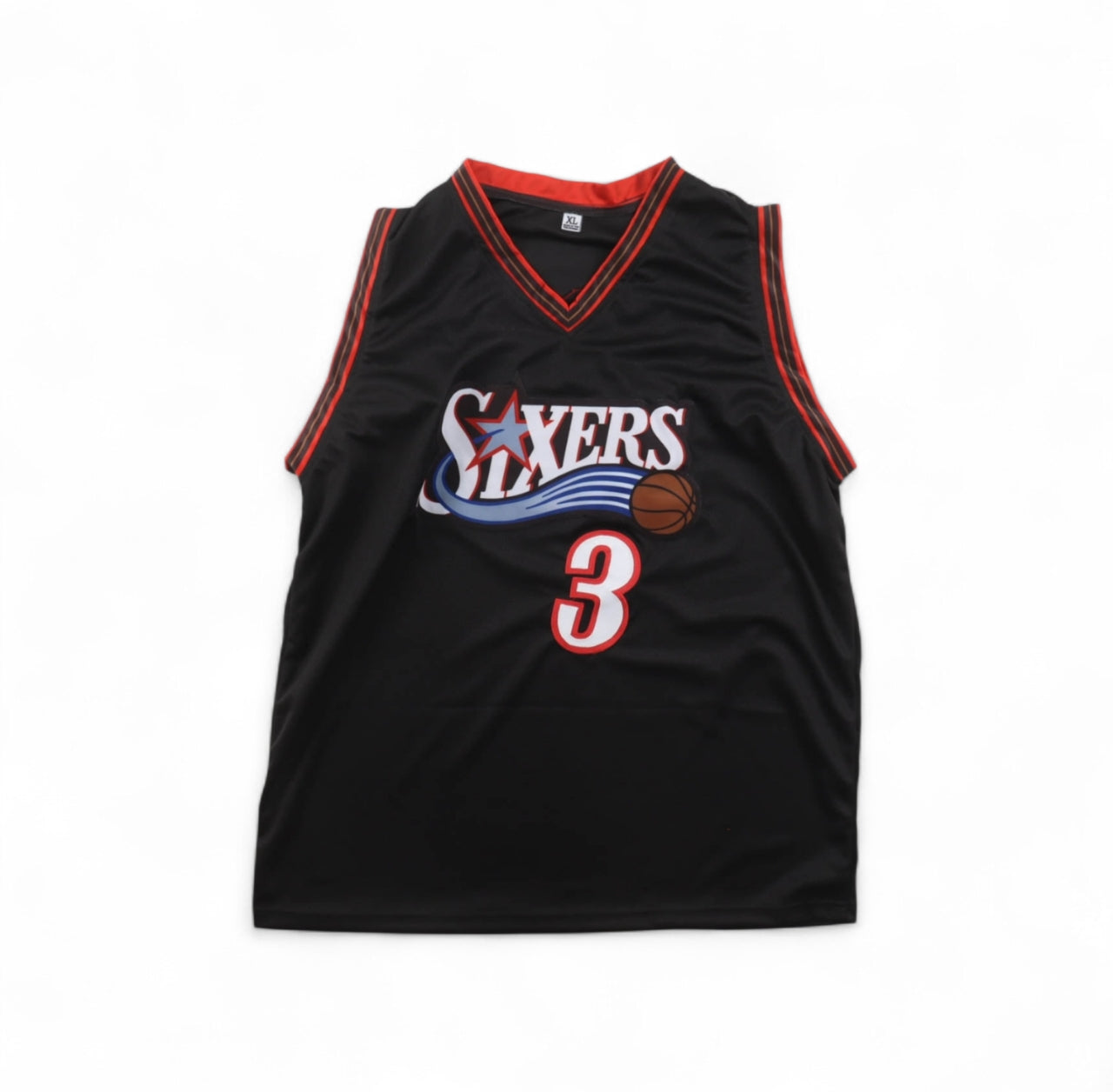 Custom jersey with everything sewn on, size XL. Hand-signed by Allen Iverson (HOF).
